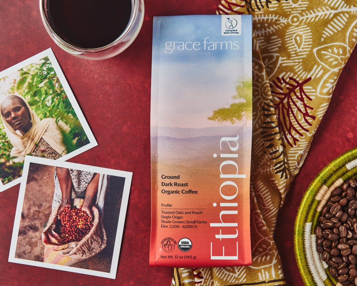 A Grace Farms leaflet is included, sharing the story behind our mission and our ethically and sustainably sourced coffees.