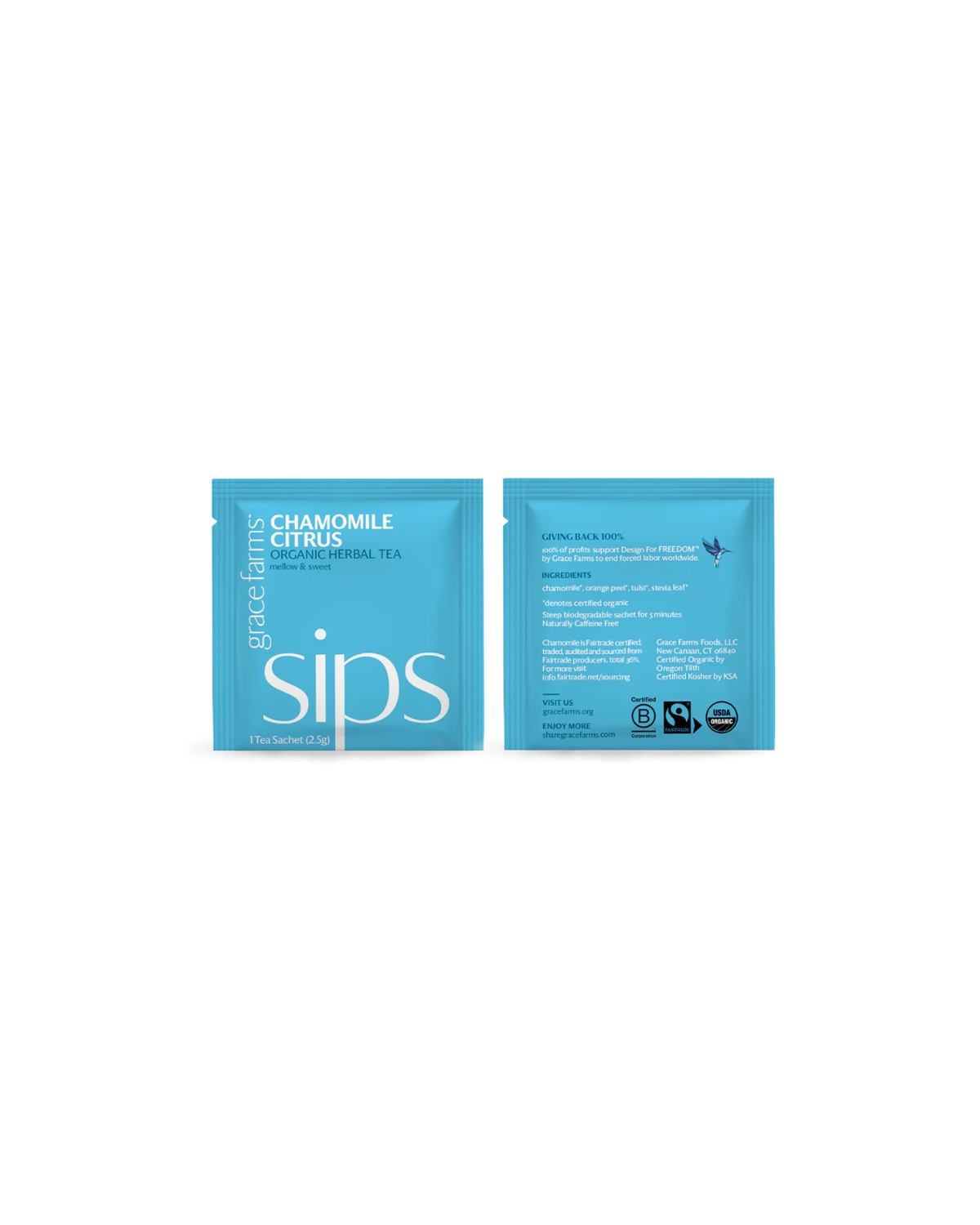 We source 100% organic, Fairtrade chamomile from Egypt, where ideal growing conditions yield sweet, aromatic blossoms. Like all Grace Farms teas, every ingredient is chosen with care for quality, sustainability, and impact. And as always, 100% of profits support Grace Farms' mission to end forced labor worldwide.