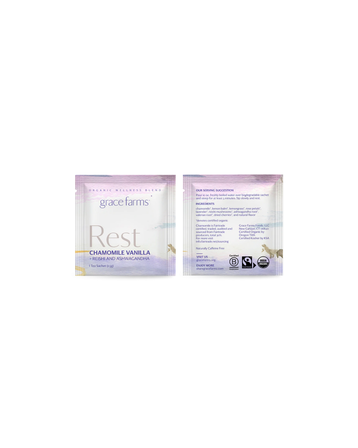 Rest is a calming, caffeine-free tea designed to support deep relaxation and quality sleep. Blending traditional botanicals like chamomile, lavender, and lemon balm with adaptogenic ashwagandha root and reishi mushrooms, this tea is as functional as it is comforting. Hints of rose petals, dried cherries, and smooth vanilla round out the experience. Savor at the end of the day and let this floral, herbaceous blend guide you into rest.